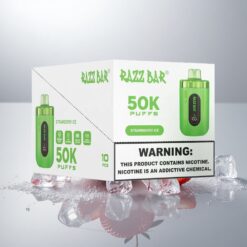 Razz Bar 50K Puffs Disposable Vape Mansikka-Jää + 50000 Tuhinaa, 1.0 Ohm Verkkokäämi, 650 mAh, Type-C, 2% Nikotiinia