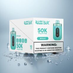 Razz Bar 50K Puffs Disposable Vape Sininen, 50000 Tupaa, 1.0 Ohm Verkkokela, 650 mAh Akku, Type-C Ladata