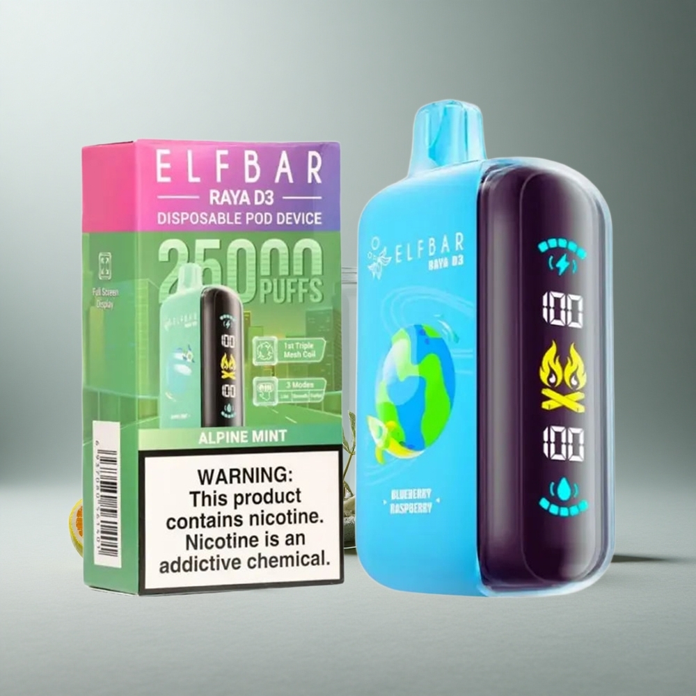 ELF BAR RAYA D3 25000 Puffs Kertakäyttöinen Vape Alppiminttu 850mAh 23ml 5% Tyyppi-C