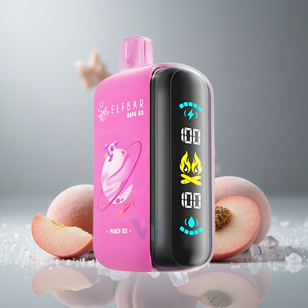 ELF BAR RAYA D3 25000 Puhallus Kertakäyttöinen Vape Persikka-Jää (850mAh, 23ml, 5% Nikotiinia, Type-C)