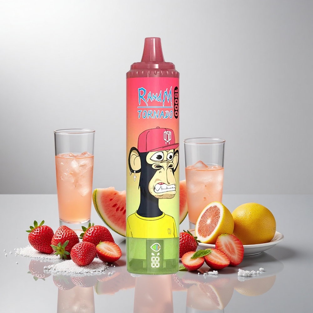 Fumot RandM Tornado 15000 Puffs Mansikka-Arbuusi-Limonadi 25ml 850mAh Mesh USB-C LCD