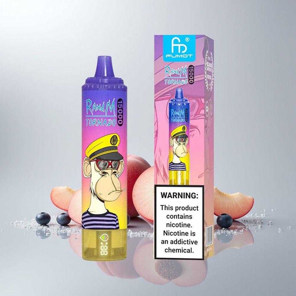 Fumot RandM Tornado 15000 Puffs Persikka Mustikka Karkki 25ml 850mAh Mesh LCD