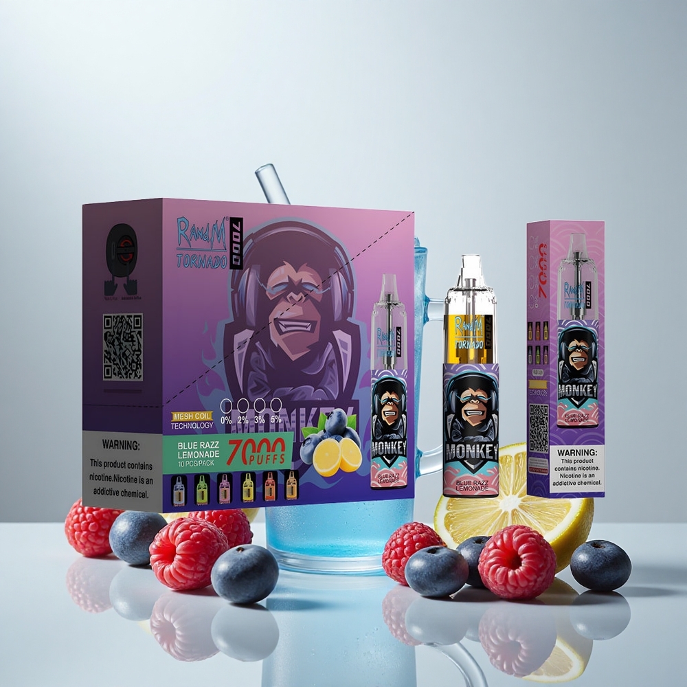 Fumot Tornado 7000 Puffs Sininen Vadelma Limonadi 14ML 850MAH Type-C RGB