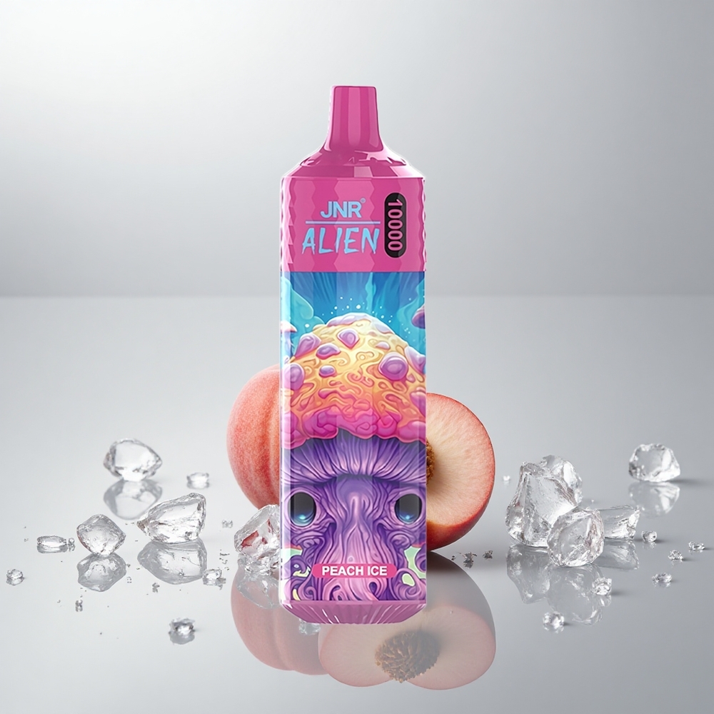 JNR Alien 10000 Puffs Persikka jää + 850mAh Akku, 20ml Nestee, Type-C, RGB