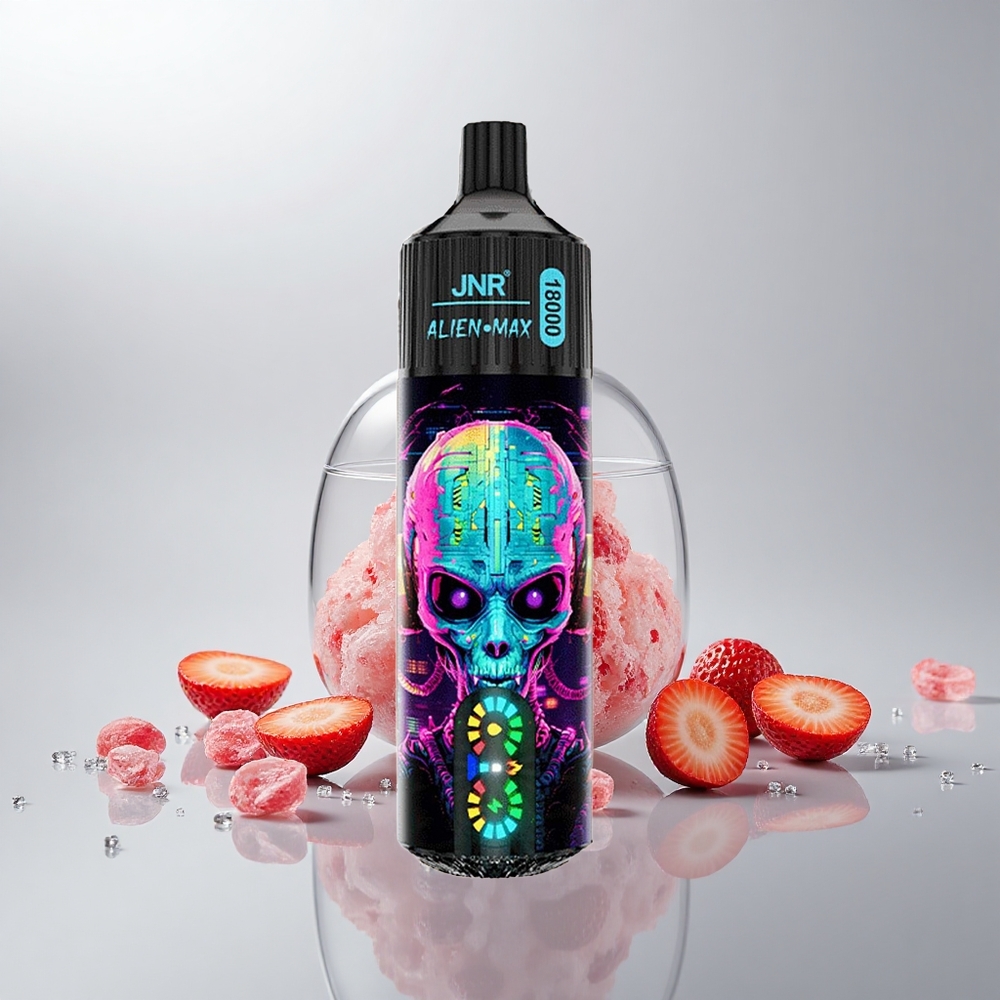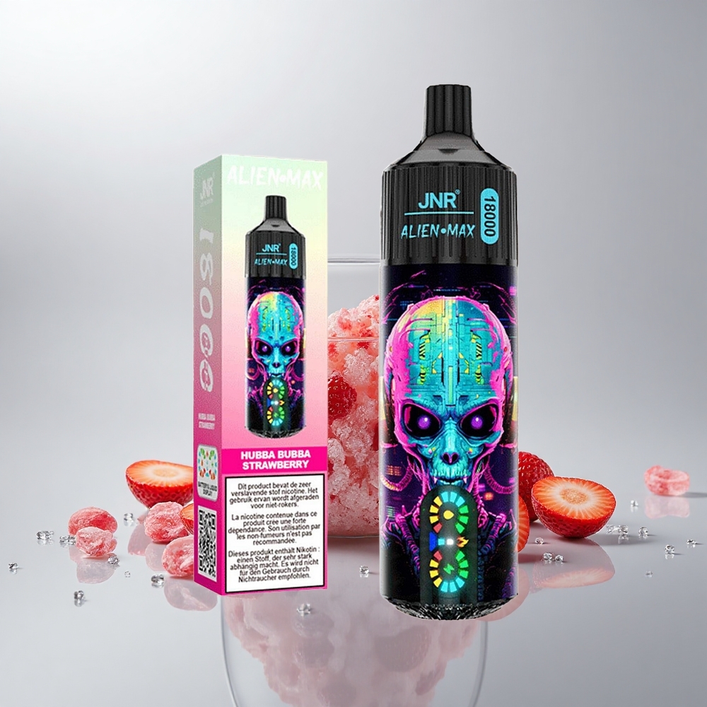 JNR Alien Max 18000 Puffs Hubba Bubba Mansikka Älykäs LED-näyttö Kaksoisverkkokäämi 850mAh 28ml Type-C
