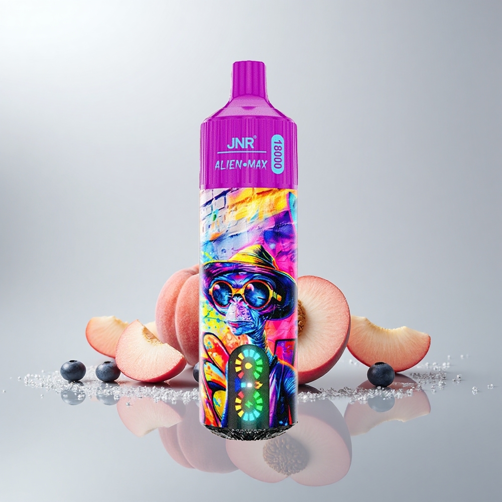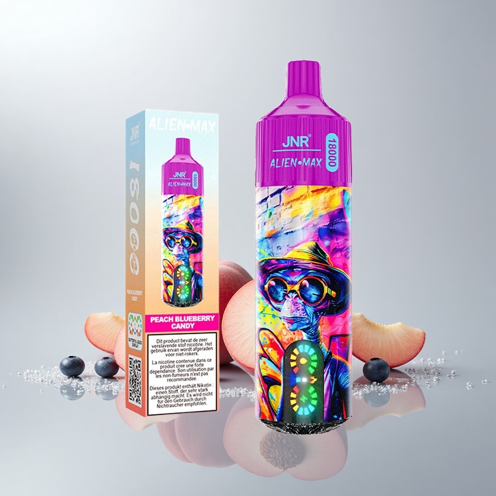 JNR Alien Max 18000 Puffs Persikka Mustikka Karkki Älykäs LED-näyttö Kaksois-Mesh Käämi 28ml E-neste Type-C Pikalataus 850mAh