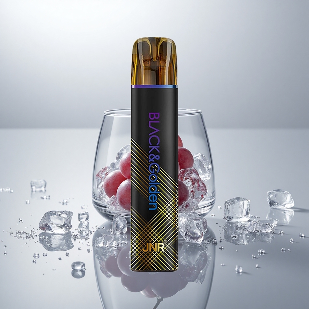 JNR Black&Golden 600+200 Puffs Disposable Vape Mustajää (800 Puffia, 550mAh, 2ml, TPD, 2% Nikotiinia)