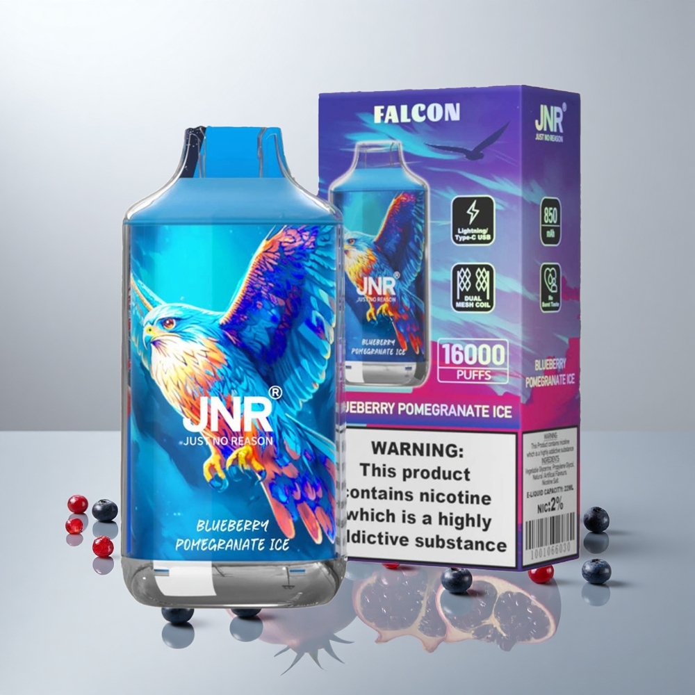 JNR Falcon 16000 Puffs Mustikka Granaatti Jää 850 mAh 22ml Dual Mesh Coil Type C LED