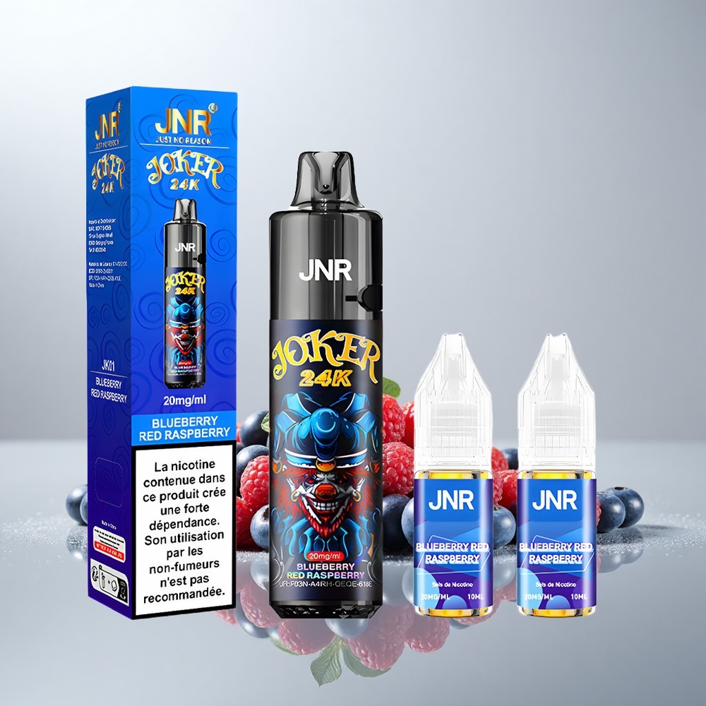 JNR Joker 24K Puffs Mustikka Punainen Vadelma 2+10ml Täytettävä 800mAh