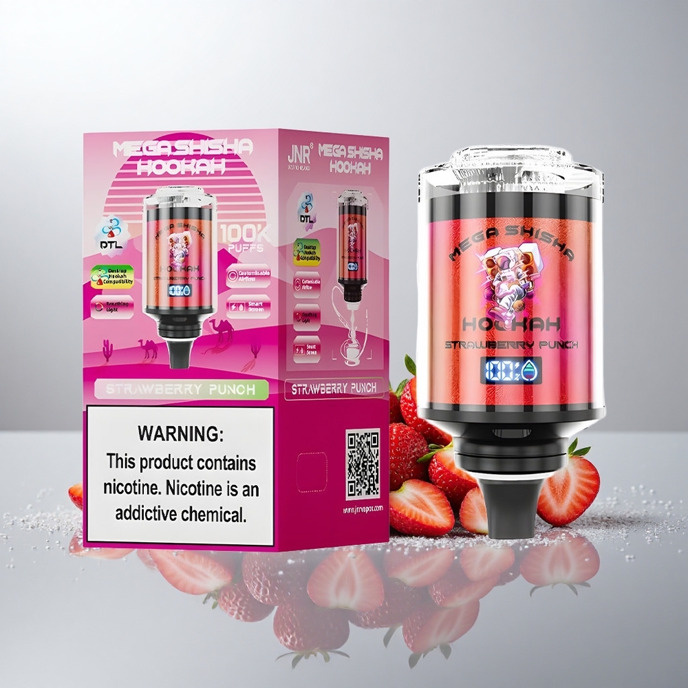 JNR Mega Shisha 100K Mansikkapommi 60ml Nestemäistä 2200mAh 2% Nikotiinia