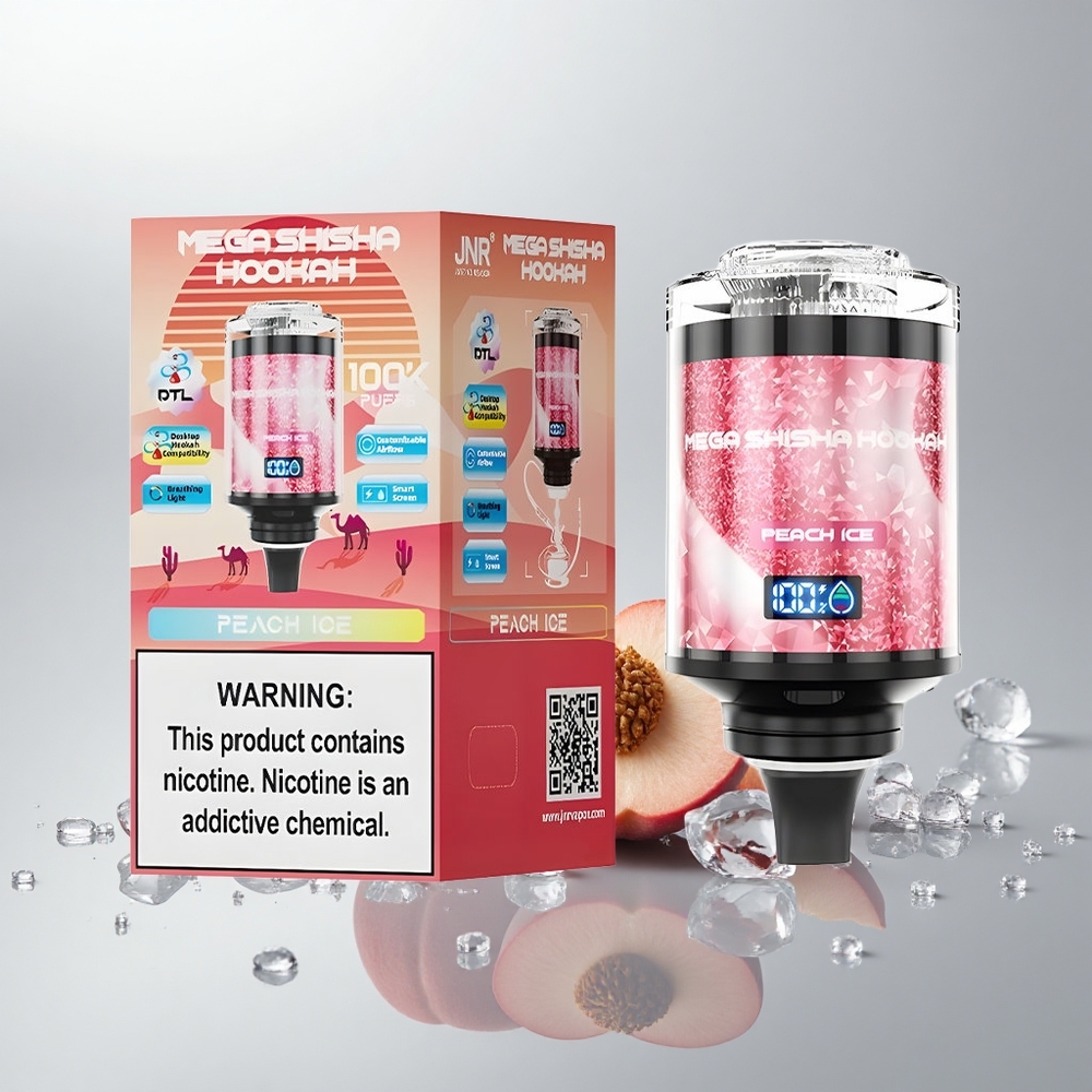 JNR Mega Shisha Pöytäkäyttö 100K Persikka-Jää 60ml 2200mAh 100000 tupaa