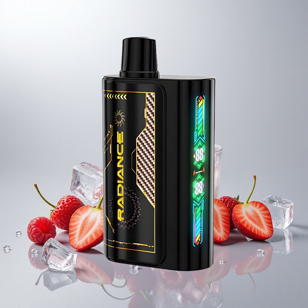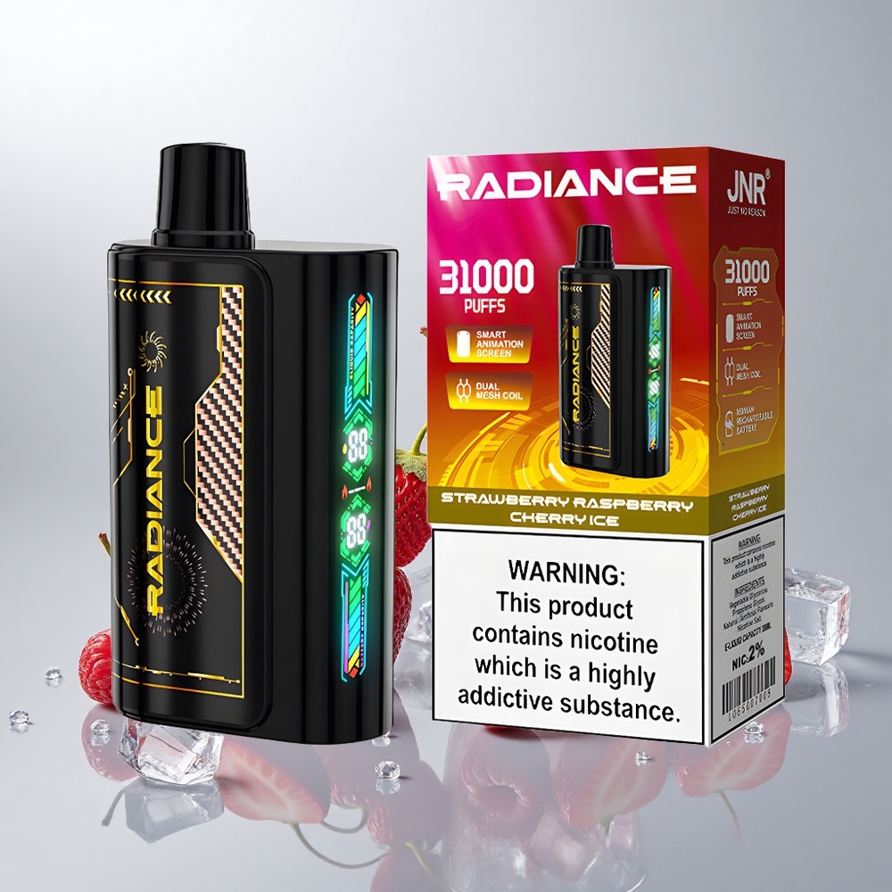 JNR Radiance 31000 Puffs Mansikka-Vadelma-Kirsikka Jää 28ml Älykäs Näyttö Kaksois-Häkkauskäämi 950 mAh USB-C 2% Nikotiinia