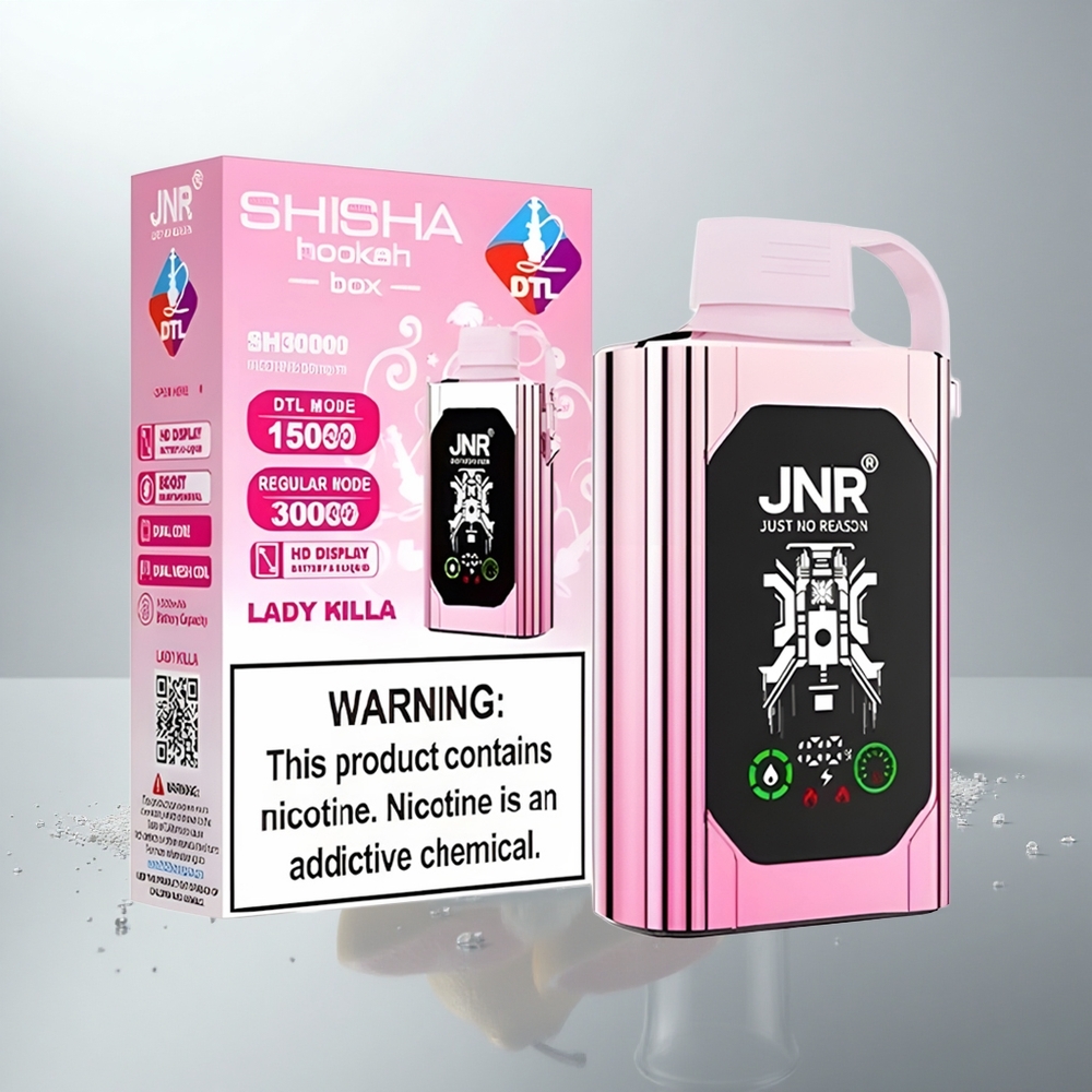 JNR Shiha Hookah Box 20500 on uudistettu ladattava disposable vape, joka tarjoaa jopa 20 500 pössäytystä. Sen 25 ml:n e-nesteen määrä ja tehokas 1000 mAh akku takaavat pitkäkestoisen ja tyydyttävän käyttökokemuksen. Laitteessa on kaksoismesh-käämit, jotka tuottavat runsaita höyryjä ja rikasta makua. DTL (Direct-to-Lung) -vapautus mahdollistaa pehmeän mutta voimakkaan höyrytyksen. HD-näyttö näyttää akun ja e-nesteen tilan helposti luettavasti.