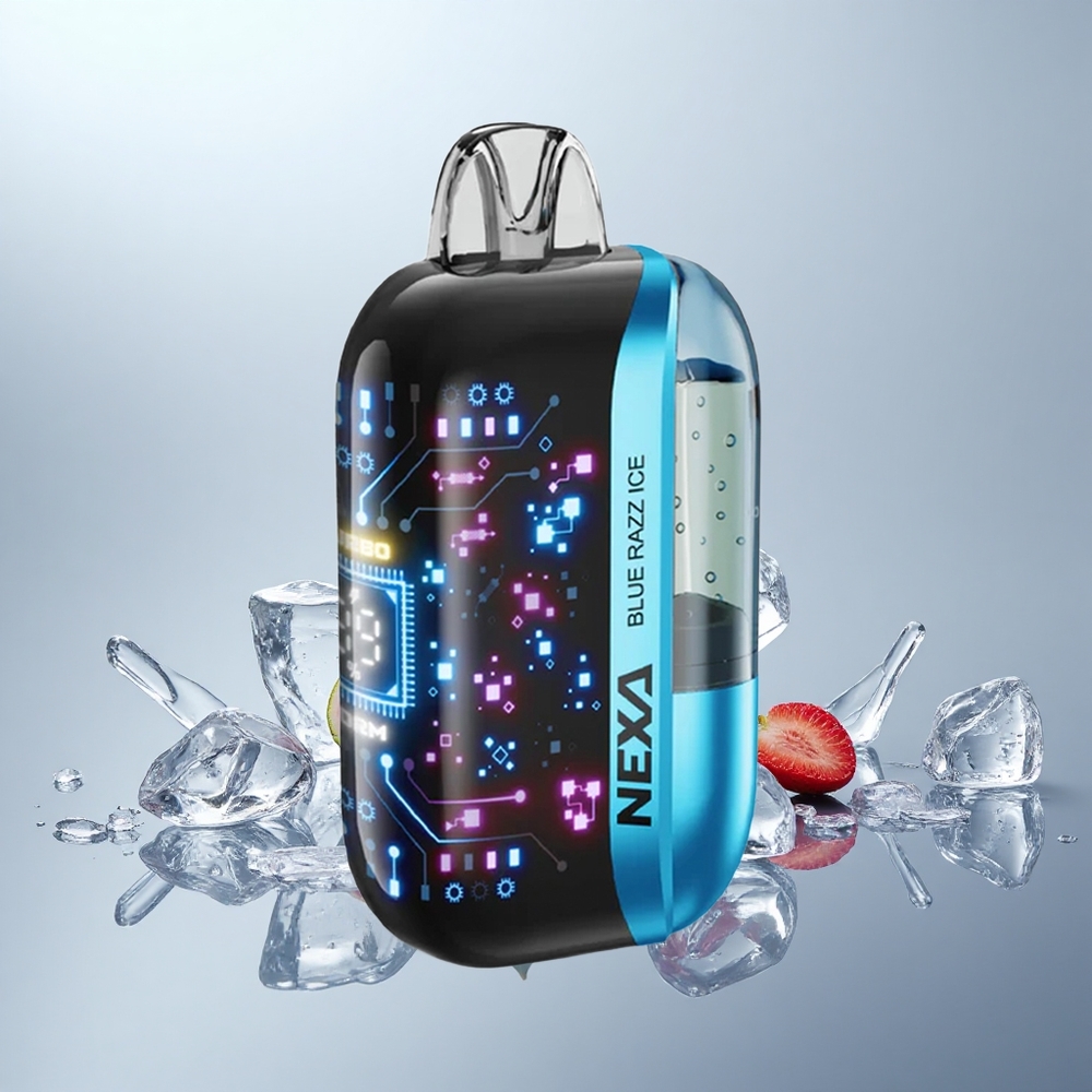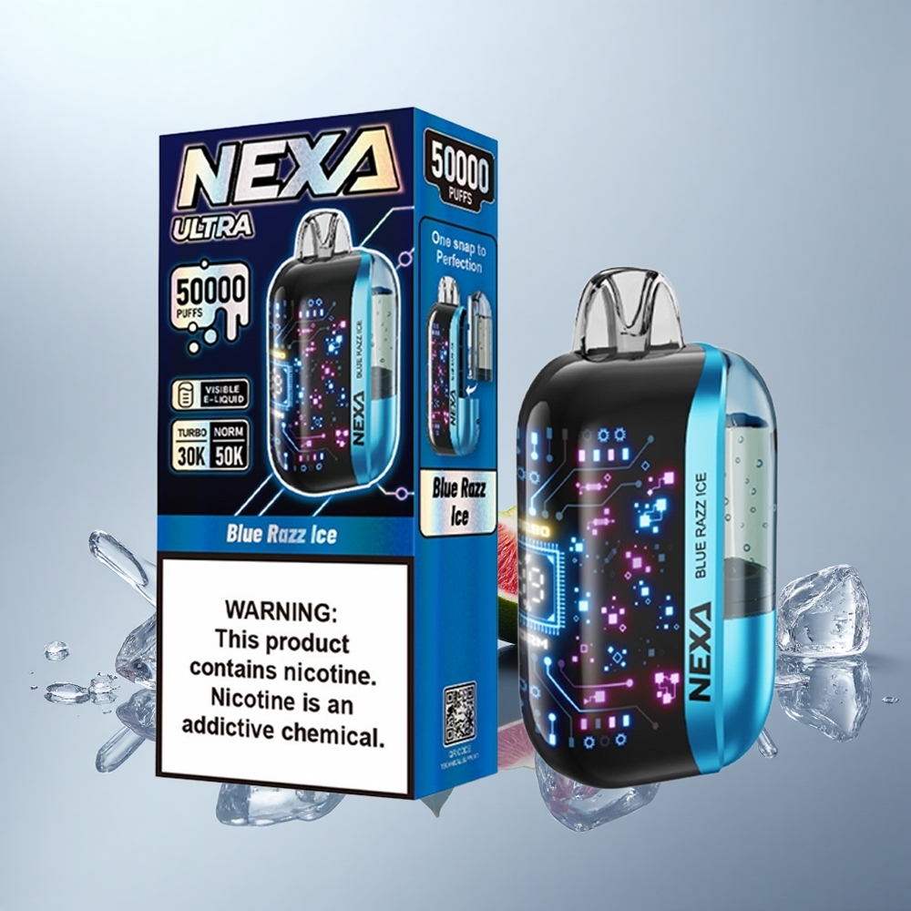 NEXA Ultra 50K Kertakäyttöinen Vape Sininen Vadelma Jää 20ml 800mAh 50000 Tupahdusta 5% Nikotiinia 0.9ohm Kaksoisverkkokäämit