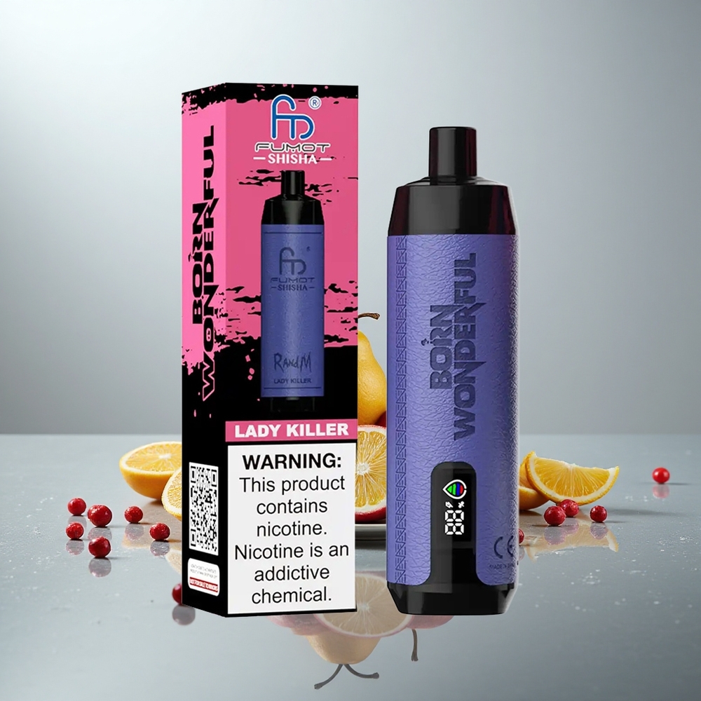 RandM Fumot Shisha 10000 Puffs Lady Killer 18ml Esitäytetty 0.5% Nikotiinia LED 850mAh Type-C