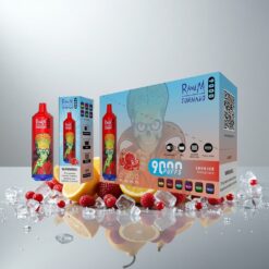 RandM Tornado 9000 Puffs 850 mAh Ladattava 18 mL RGB-näyttö Mesh-käämi Sateenkaari Makeiset 54 Makua