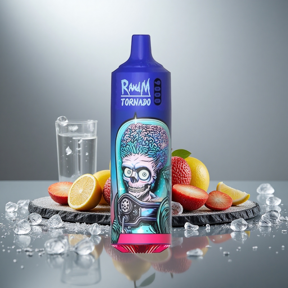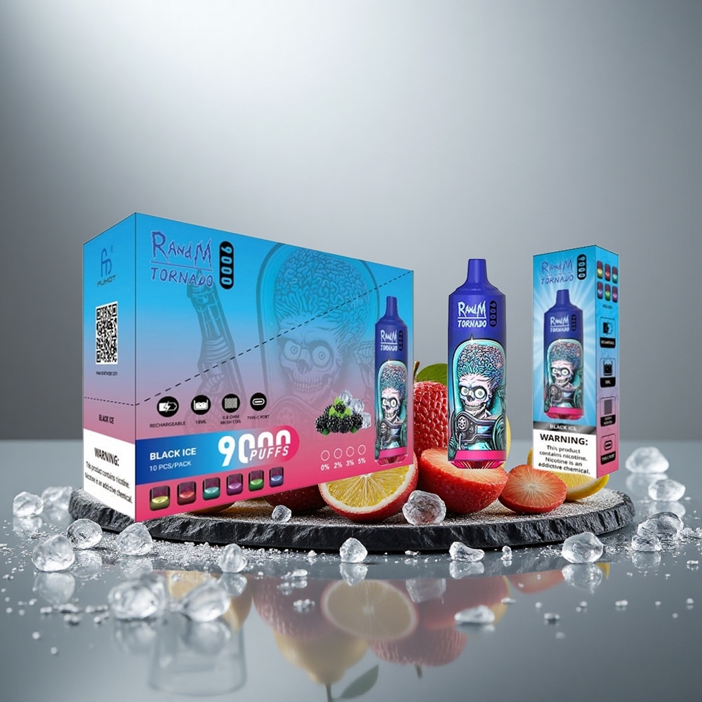 RandM Tornado 9000 Puffs Musta Jää 850 mAh 18 mL Mesh-käämi RGB-näyttö