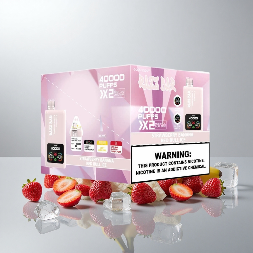 Razz Bar 40000 Puffs Mansikka-Banaani_Red Bull Jää Näyttö 1.0惟 2 650mAh Type-C