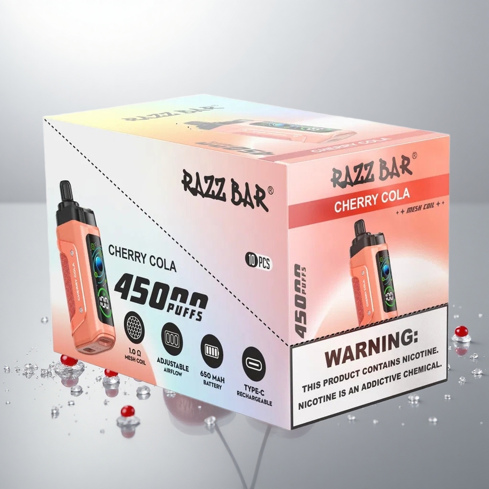 Razz Bar 45000 Puffs Kertakäyttöinen Vape Kirska-Kola 1.0 Ohm Verkkokäämi 650 mAh