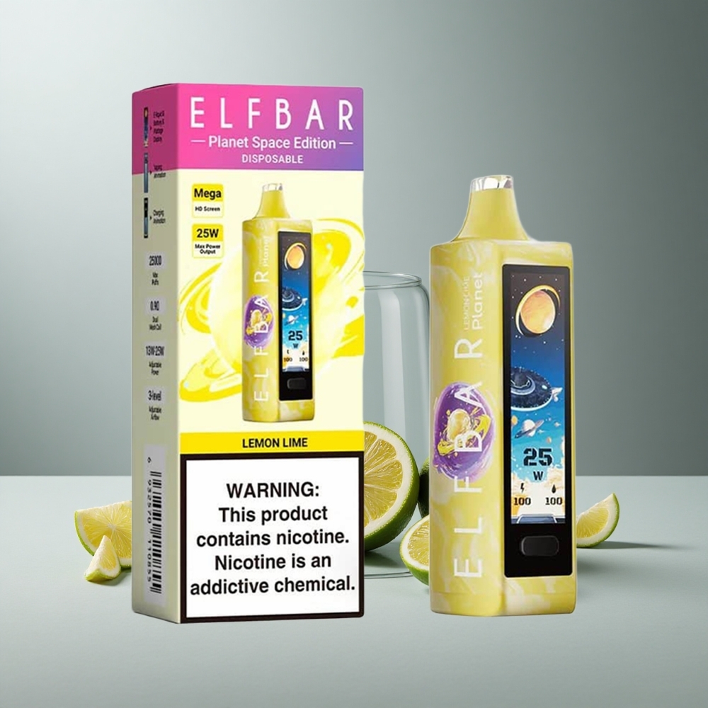 Elf Bar Planet 25000 Pussit Kertakäyttöinen Vape Sitruuna Lime 50mg Nikotiinia 18ml Neste 800mAh Akku Mesh Käämi