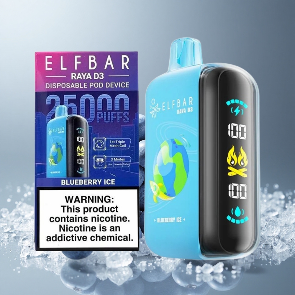 ELF BAR RAYA D3 25000 Puhallusta Mustikkajää 850mAh 23ml 5% Nikotiinia Type-C