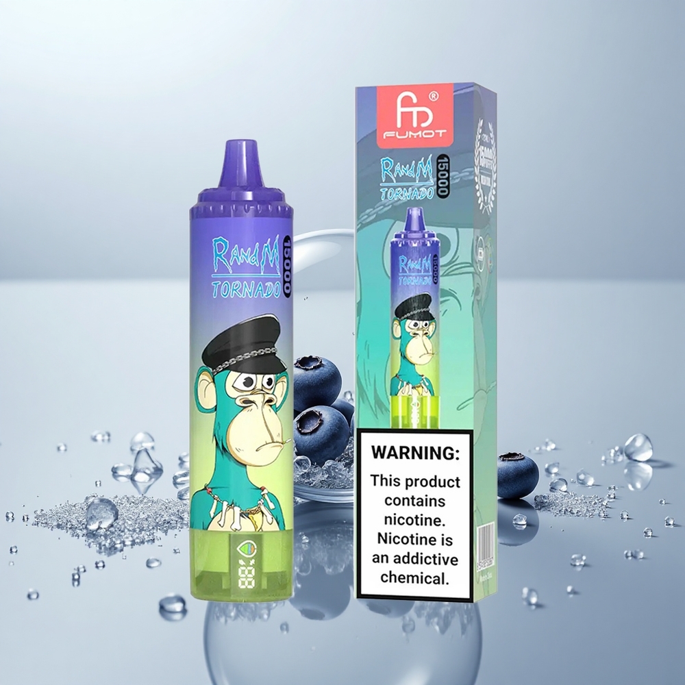 Fumot RandM Tornado 15000 Puffs Mustikka-Kumimaku + 25ml nestemäärä, 850mAh akku, 0.9 Ohm Mesh