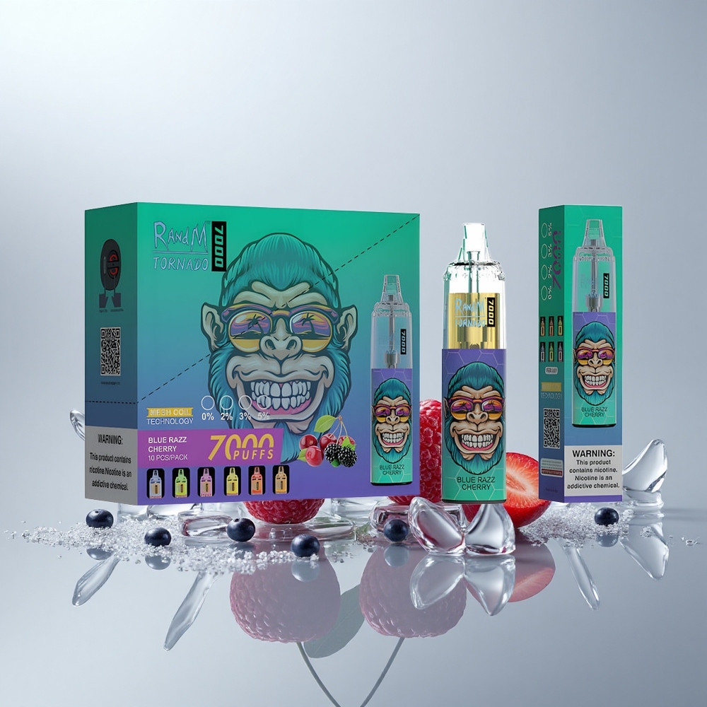Fumot Tornado 7000 Sininen Vadelma-Kirsikka 14ml 850mAh Verkko-tyyppi Type-C RGB Ilm-säädettävä
