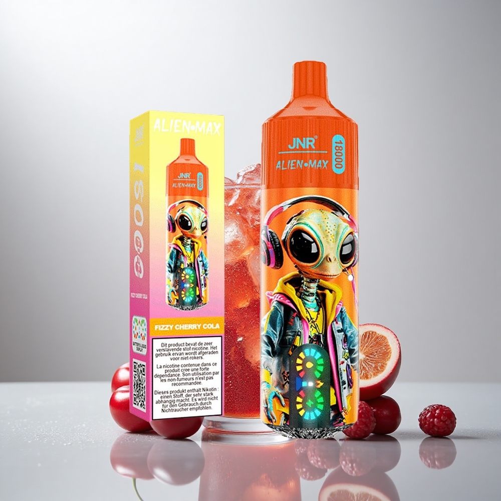 JNR Alien Max 18000 Puffs Fizzy Cherry Cola (Kirpeä Kirsikka-Kola) 850mAh 28ml Type-C 20 Makua