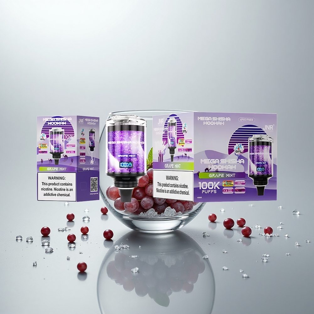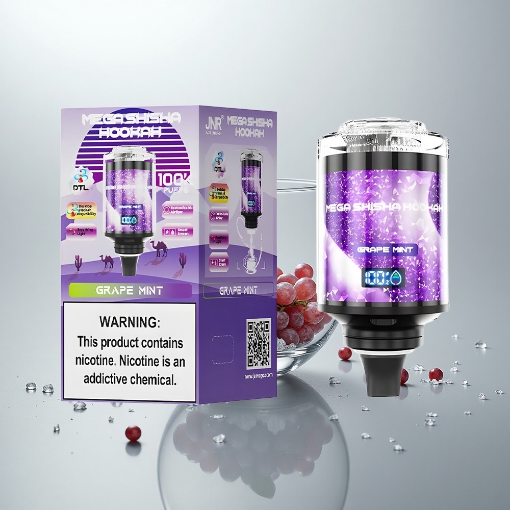 JNR Mega Shisha 100K Viinirähkä & Mint 60ml 2200mAh Type-C Älyikkäänäyttö