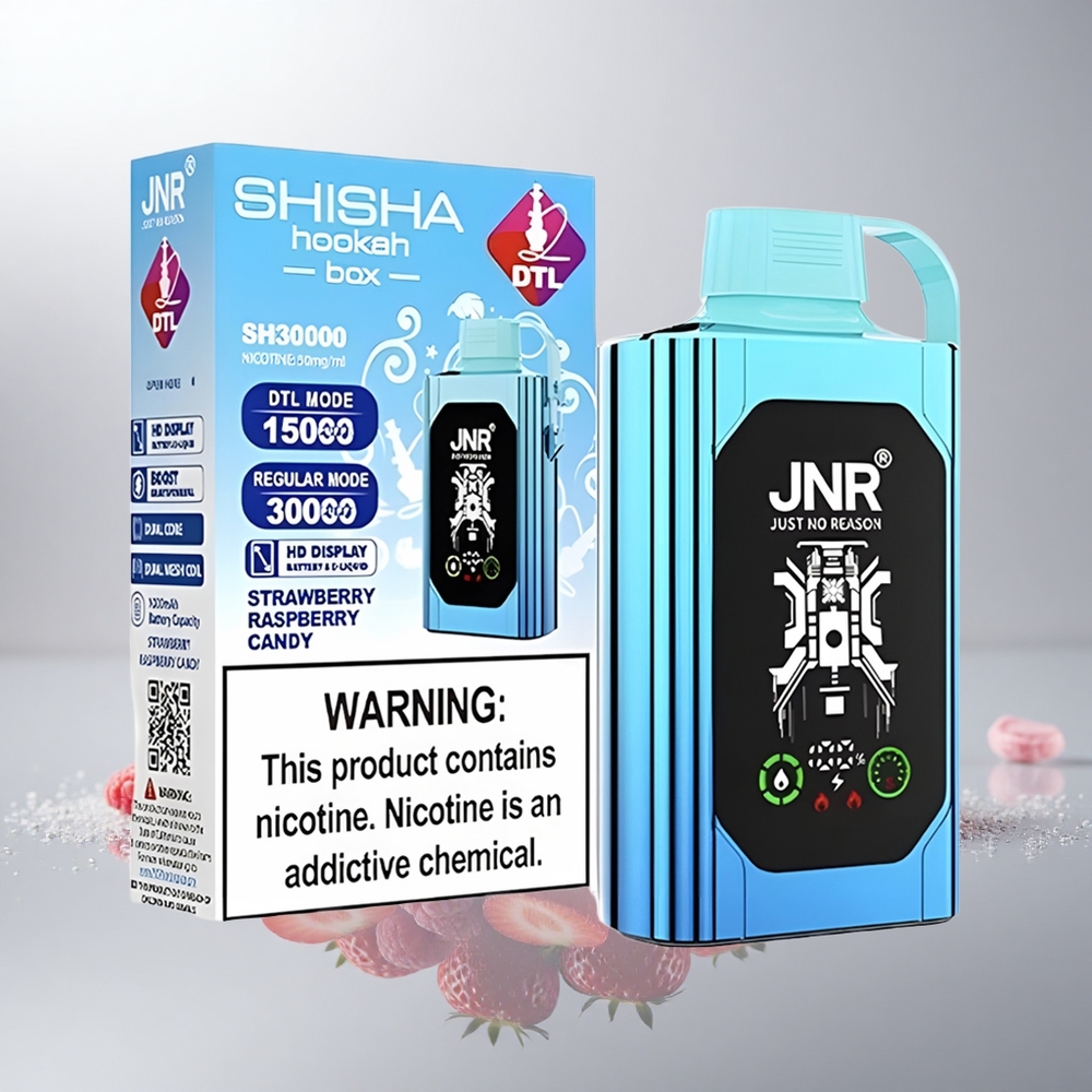 JNR Shisha Hookah Box 20500 Pussit Mansikka-Vadelmakarkki HD-näyttö 1000mAh 25ml Type-C Kaksoissydän