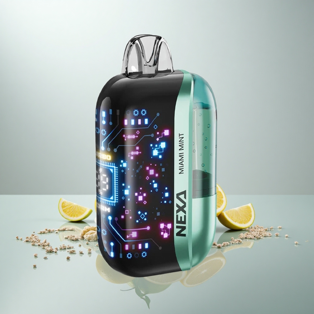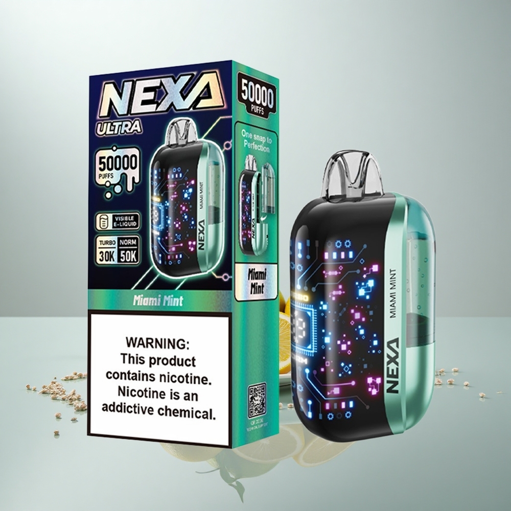 NEXA Ultra 50K Miami Mint (20ml esitäytetty, 800mAh akku, 50000 savut, 5% nikotiinia, 0.9ohm Dual Mesh, 3d-käyränäyttö, Type-C)