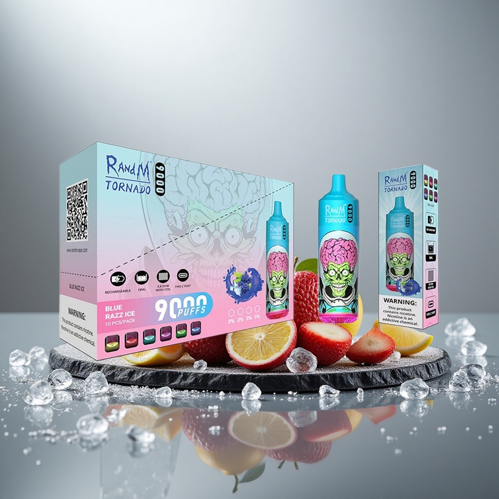 RandM Tornado 9000 Puffs Musta Lohikäärme Jää 850 mAh 18 mL Mesh RGB