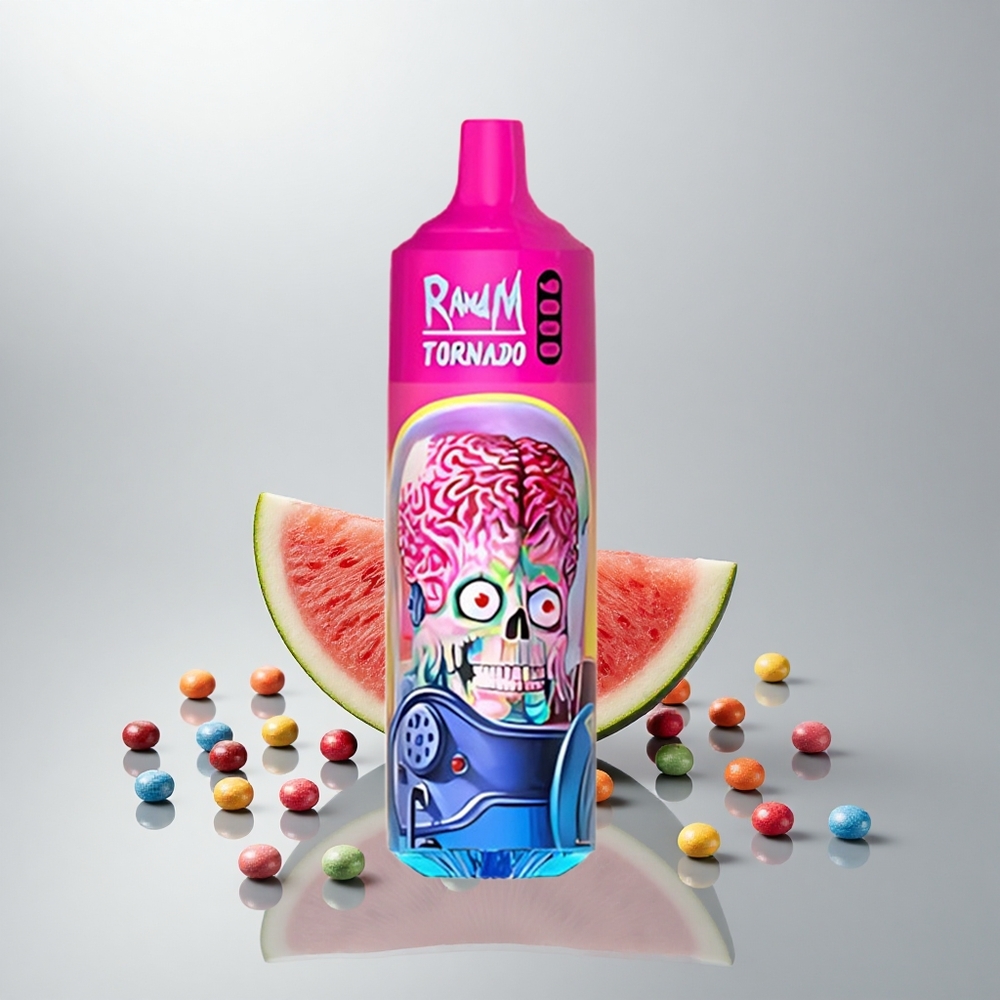 RandM Tornado 9000 Puffs Vesimeloni Skittles 850 mAh Ladattava 18 mL Mesh-käämi RGB-näyttö