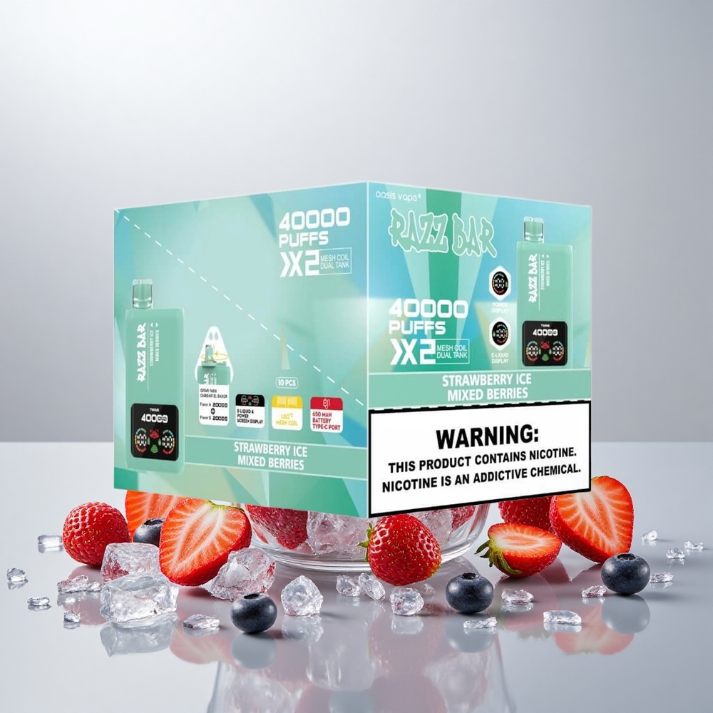 Razz Bar 40000 Puffs Mansikkajää_Marjamix Näyttö 1.0Ω 2 Kääm 650mAh Type-C